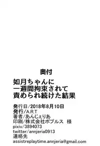 (C94) [A.R.T (Annjeria)] Kisaragi-chan ni Isshuukan Kousoku Sarete Semerare Tsuzuketa Kekka (Kantai Collection -KanColle-)