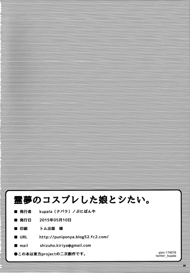 (Reitaisai 12) [Puniponya (Kupala)] Reimu no cosplay shita musume to shitai. (Touhou Project)