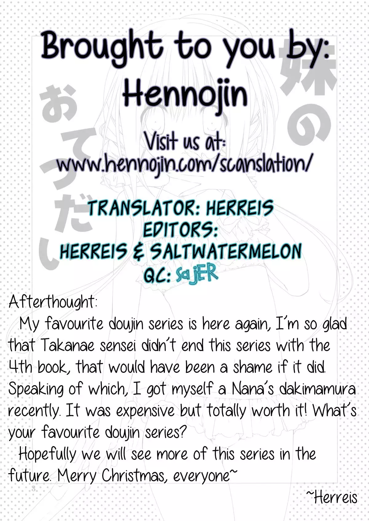 (COMIC1☆7) [Takanaedoko (Takanae Kyourin)] Imouto no Otetsudai 4 | Little Sister Helper 4 [English] {Hennojin}