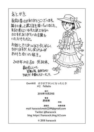 OwnWill Boku ga Atashi ni Natta Toki #2 Fellatio [原胡来のマンガ部屋 (原胡来)] OwnWill ボクがアタシになったとき #2 Fellatio [中国翻訳]