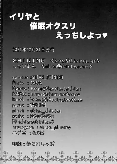 Illya to Saimin Okusuri Ecchi shiyo | 和伊莉雅用催眠媚藥來做愛吧♥