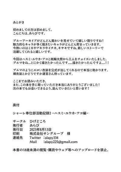 [Higedokoro (Alapi)] Schale Houshibu Katsudou Kiroku 2 -Hasumi, Yuuka, Ako Hen- | This Week's Record of Activities for the Schale Relief Club 2 ~The Hasumi, Yuuka and Ako Chapter~ (Blue Archive) [English] [head empty] [Digital]