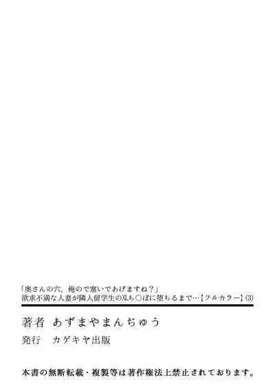 [Azumaya Manju] "Okusan no Ana, Ore no de Fusai de Agemasu ne?" Yokkyuu Fuman na Hitozuma ga Rinjin Ryuugakusei no XL Chinpo ni Ochiru made... [Full Color] 1